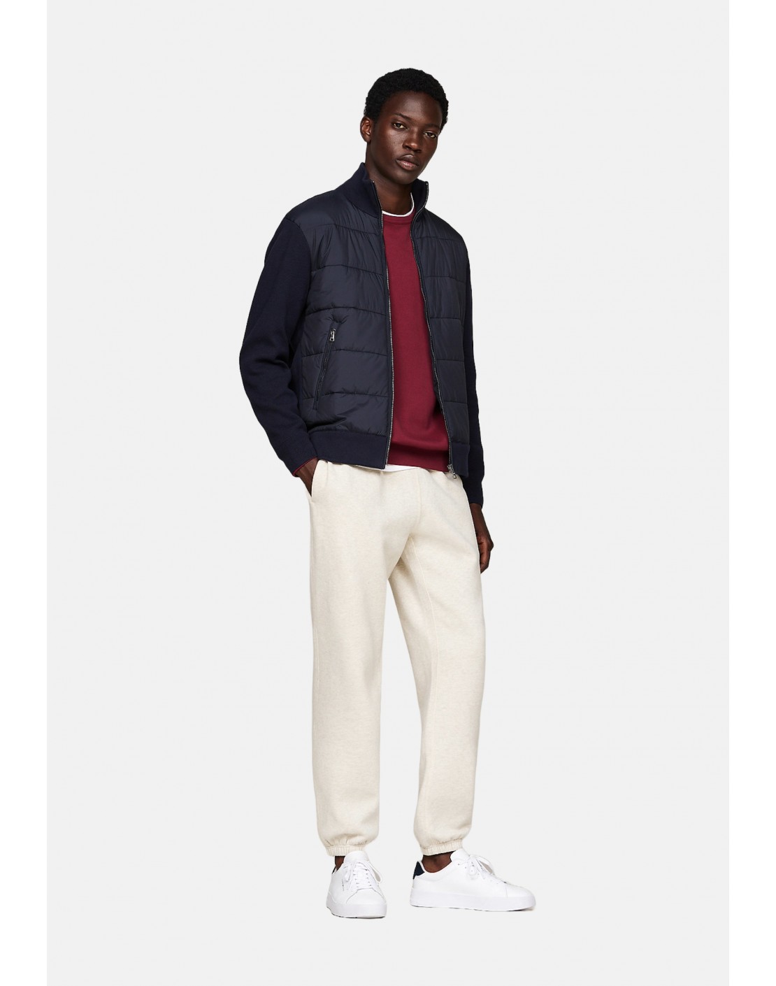 • Cuello, puños y bajo de punto elástico
