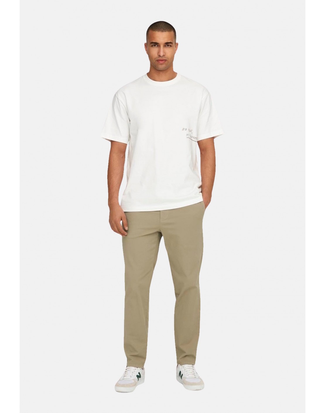 Bolsillos delanteros americanos, bolsillos ribeteados con botones en la parte posterior y dobladillo en el bajo.