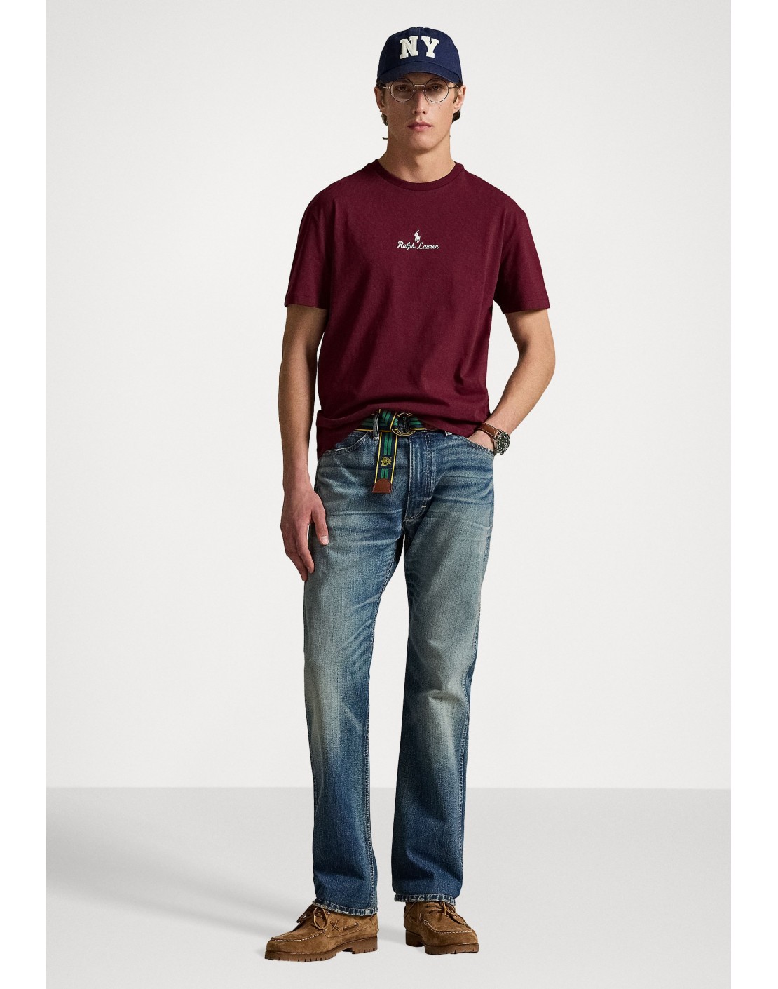 Caballo marca de la casa y "Ralph Lauren" en letra manuscrita bordados en el centro de la parte delantera.