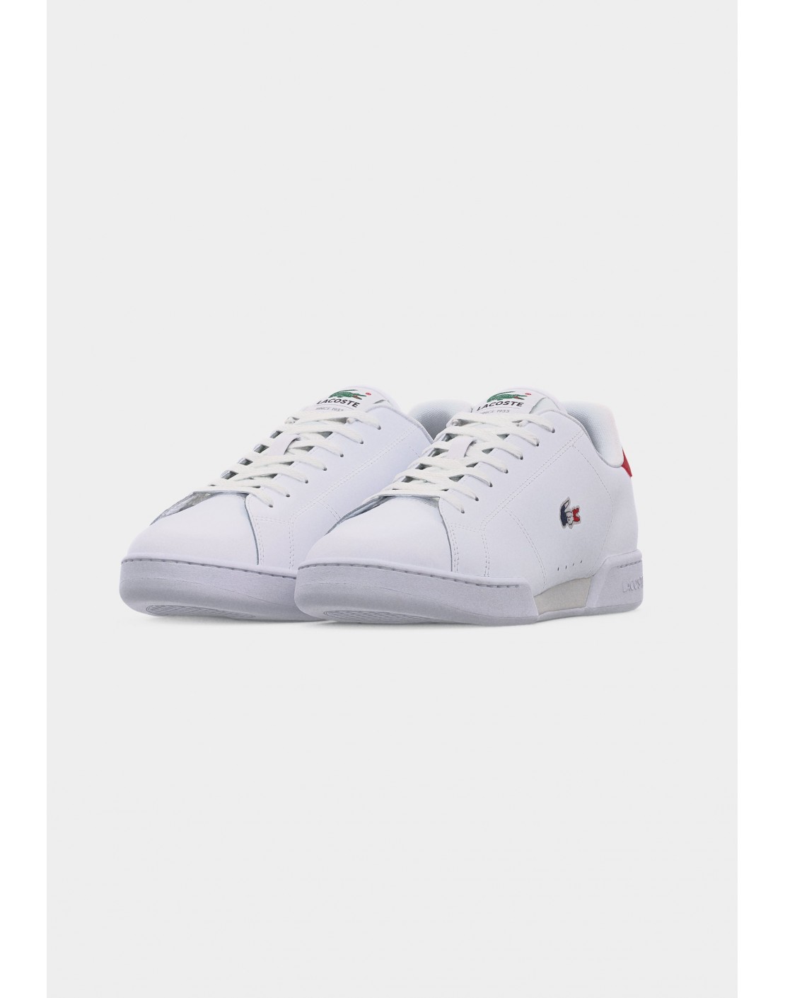 Firmas de René Lacoste en bajorrelieve en la lengüeta, el panel central y la plantilla