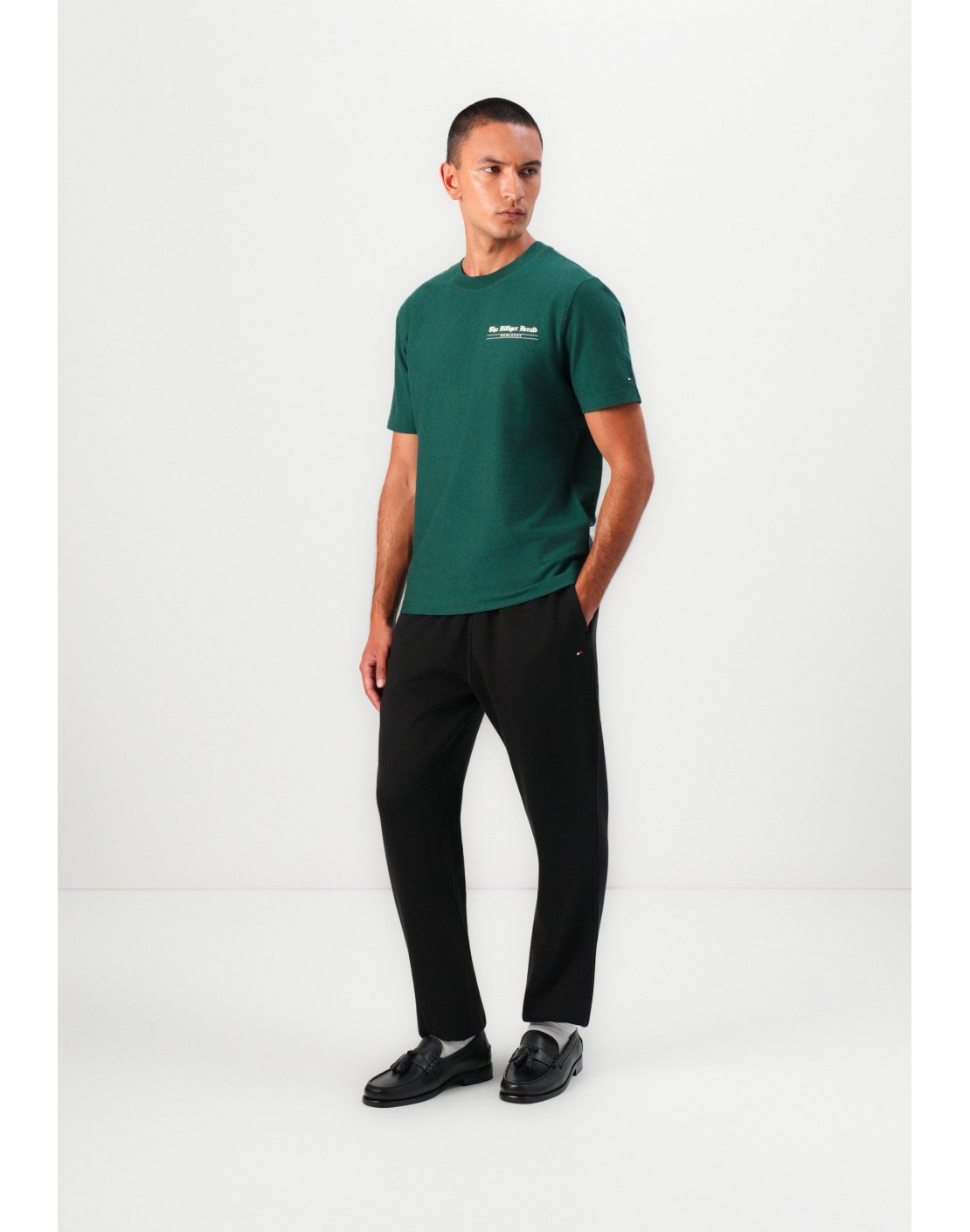 El llamativo diseño de bandera en el pecho hace una declaración en esta camiseta de jersey slim fit de algodón puro.