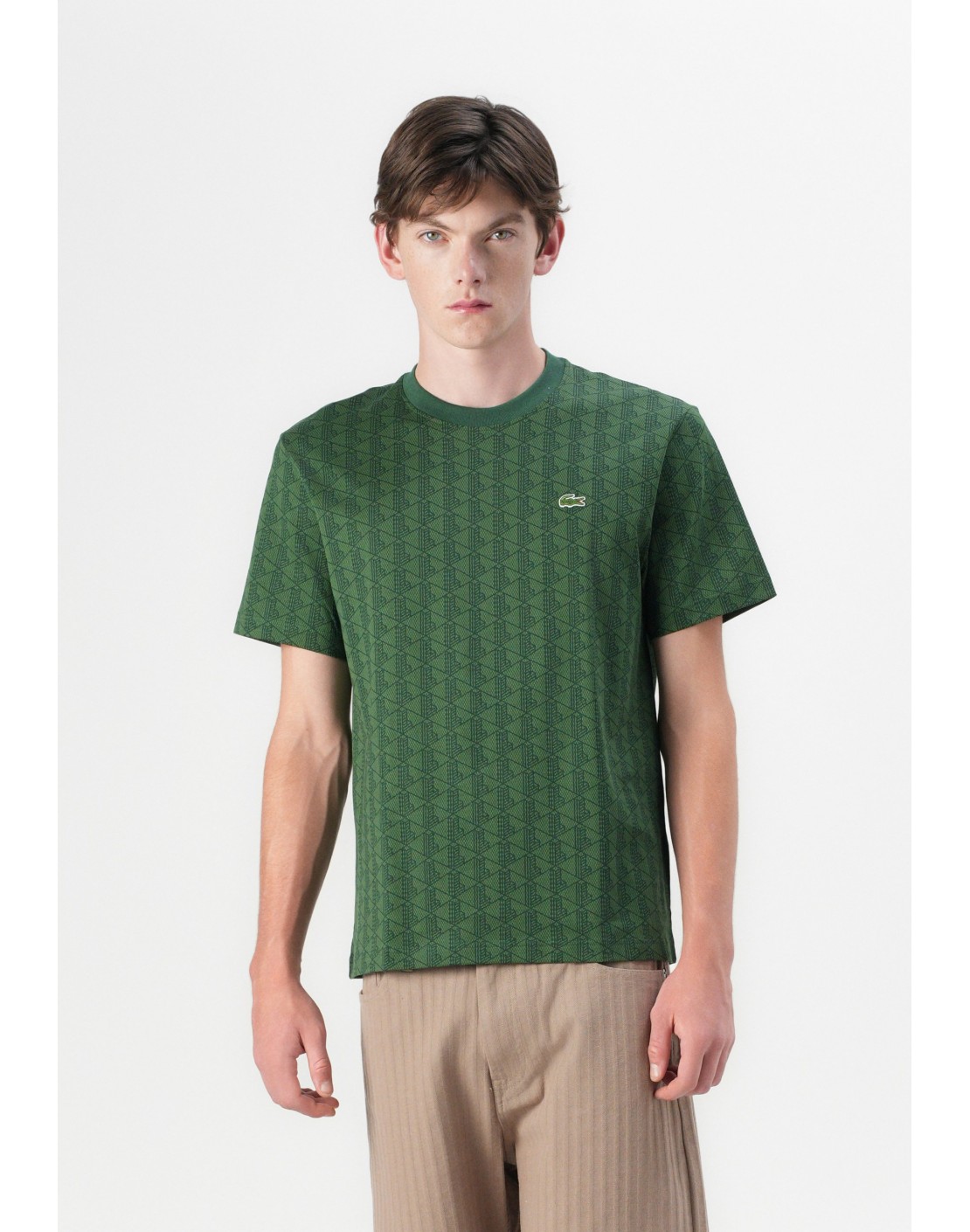 Cuello redondo clásico y manga corta.