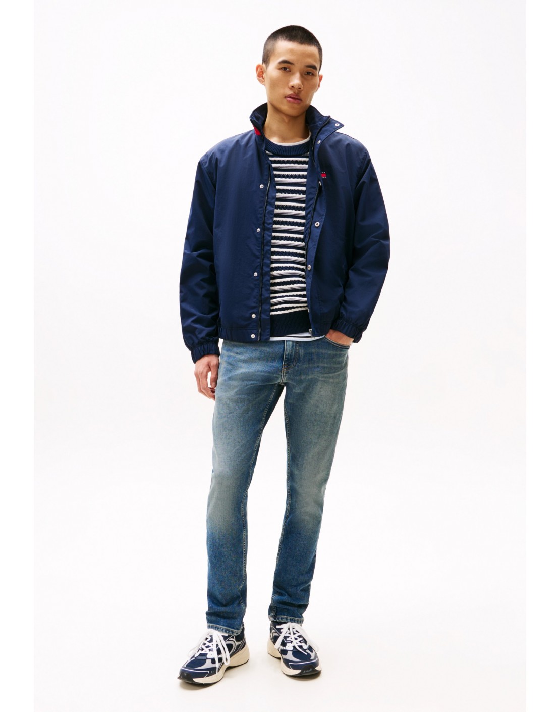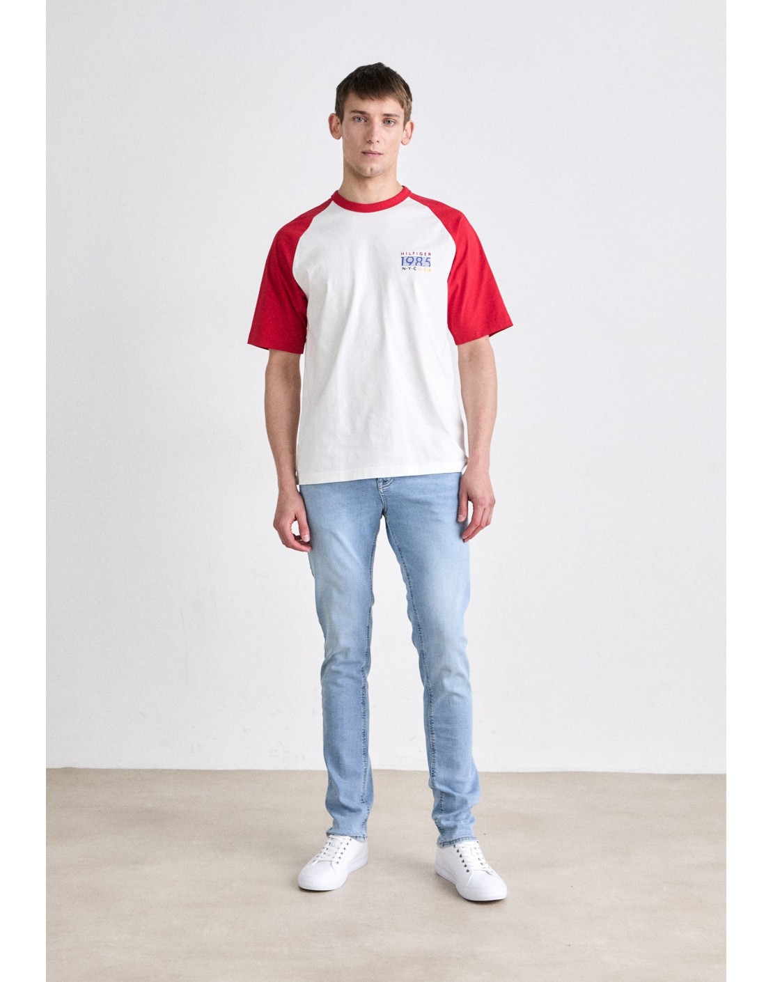 Modelo con cinco bolsillos y corte regular.