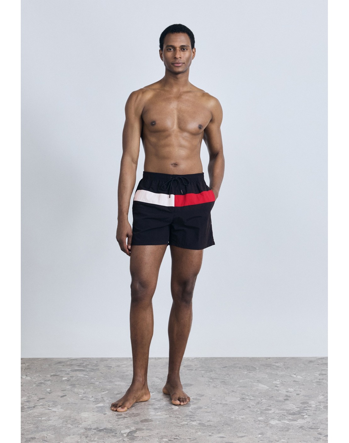 • Logo de Tommy Hilfiger con diseño color block en la parte delantera