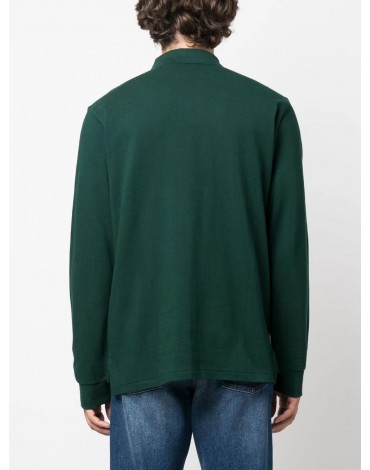 Cuello de polo acanalado. Tapeta de dos botones.