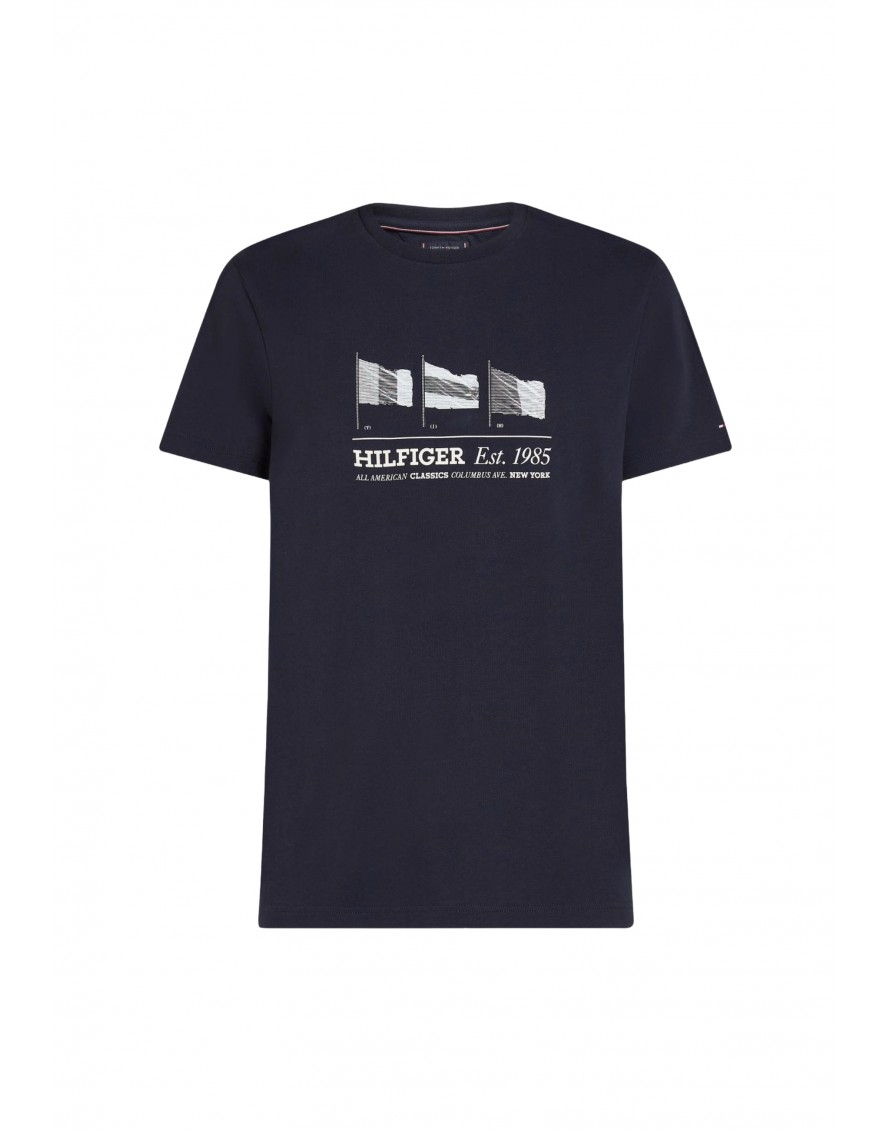 • Logo gráfico con banderas ondulantes en el pecho