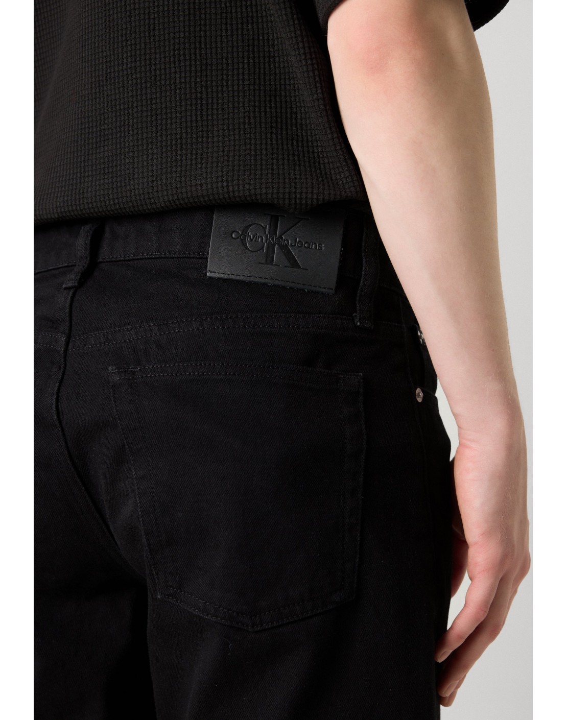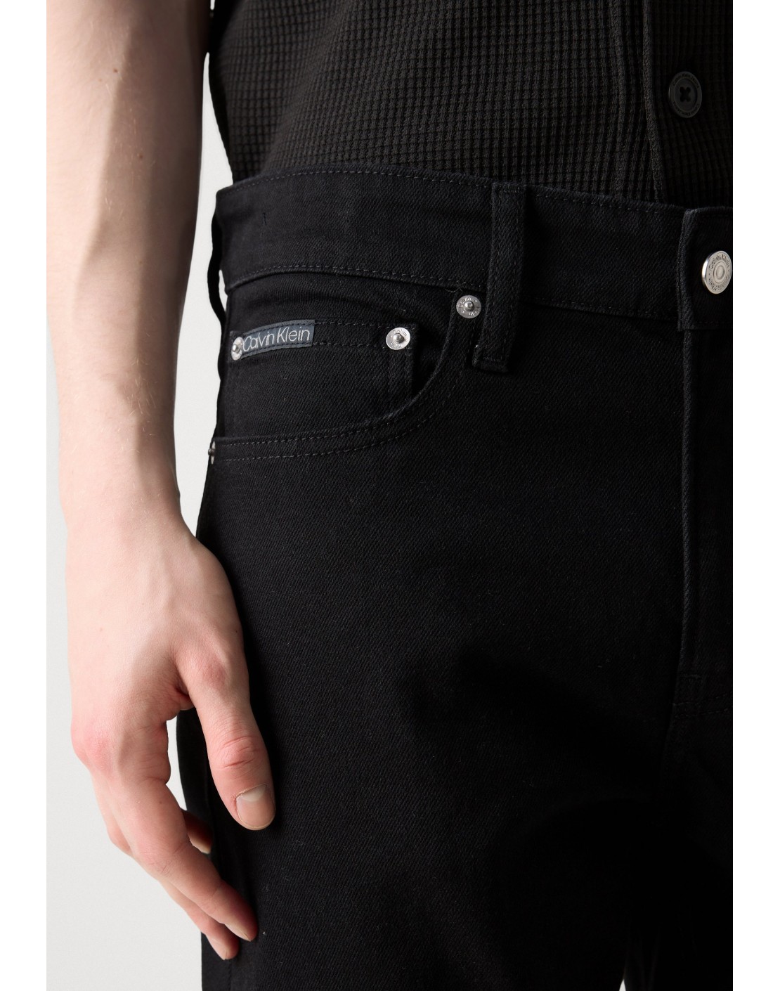 • herrajes de Calvin Klein e insignia de piel
