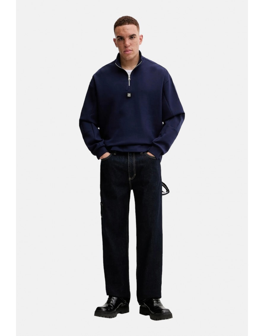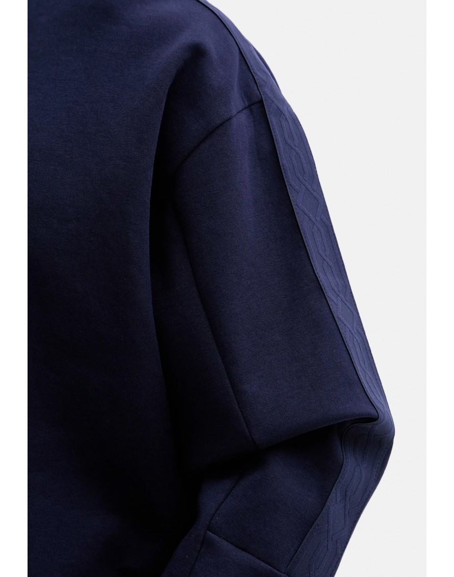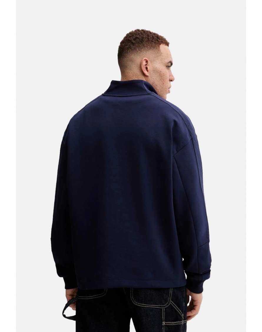 Logo apilado, una cinta geométrica en las mangas y cuello con cremallera es una prenda innovadora para vestir a capas.