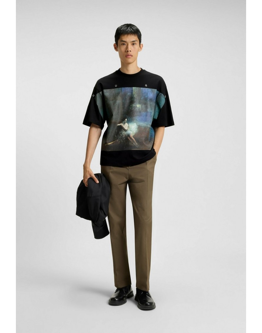 Esta camiseta HUGO Hombre de ajuste holgado está elaborada en algodón suave y aporta un toque creativo con su ilustración de bailarina.
