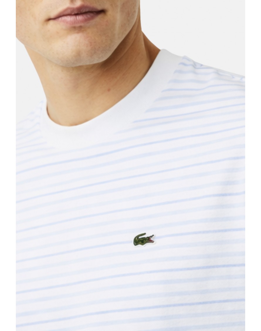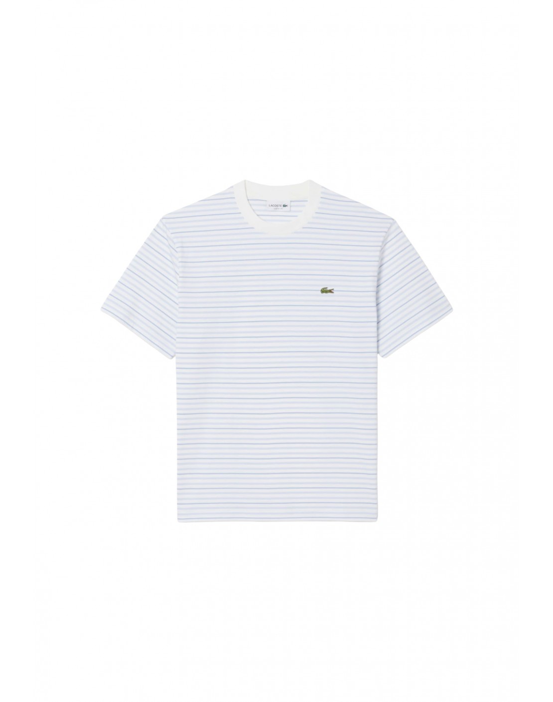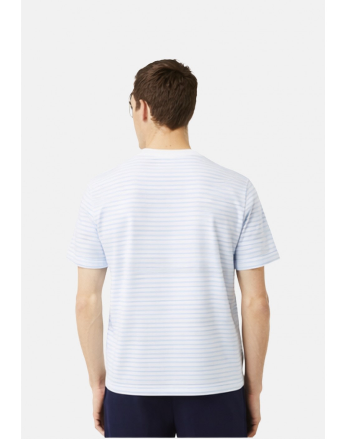 Cuello liso en contraste de rayas.